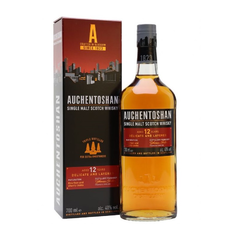 וויסקי סינגל מאלט סקוטי מאזור הלואולנד, המזוקק שלוש פעמים - תהליך ייחודי המעניק לו מרקם רך במיוחד ואופי אלגנטי. אוכנטושן 12 שנה מציע ניחוחות הדריים עשירים, מתיקות עדינה ותיבול מאוזן, עם סיומת חלקה ונעימה. שילוב של עומק ורעננות, המתאים הן לחובבי וויסקי ותיקים והן למתחילים. ללא כשרות.