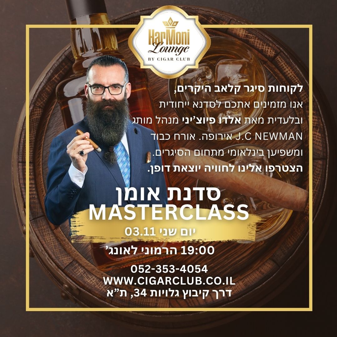 ראשי  > אירועי סיגר קלאב  > 3.11.25 - אירוע VIP טעימת סיגרים ואלכוהול עם אורח כבוד