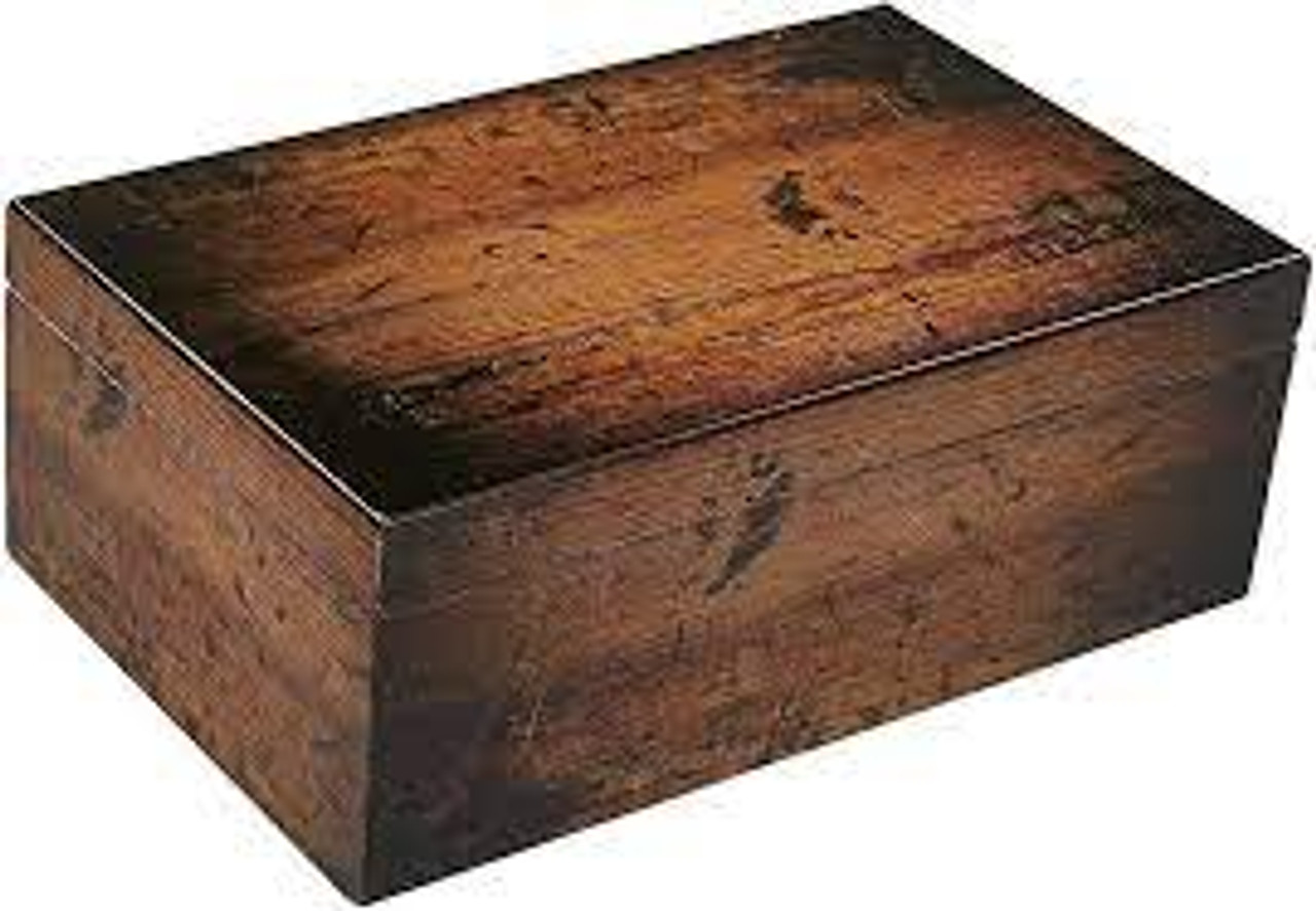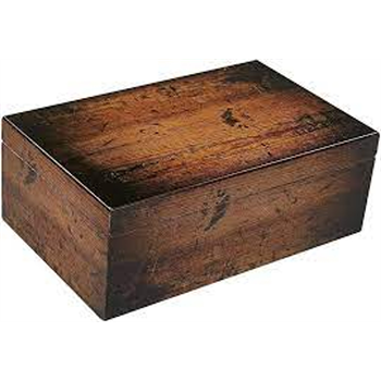 יומידור בעיצוב כפרי מחוספס בחיפוי פורניר. פנים הקופסאעשויה עץ ארז וכוללת מחיצהוהידרומטר למדידת הלחות ושמירה על הסיגרים.